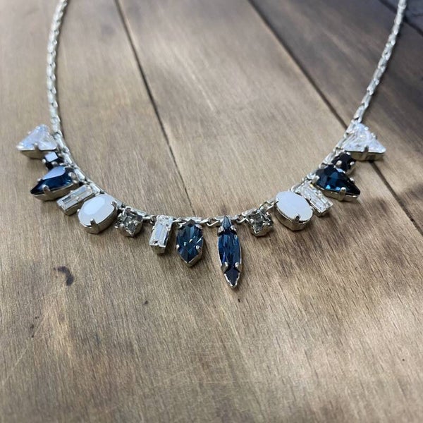Collier orné de cristaux Swarovski sur chaine, avec chaine de réglage. Entièrement réalisé à la main dans l'atelier de l'artisan bijoutier créateur : Jérôme De Stéfano