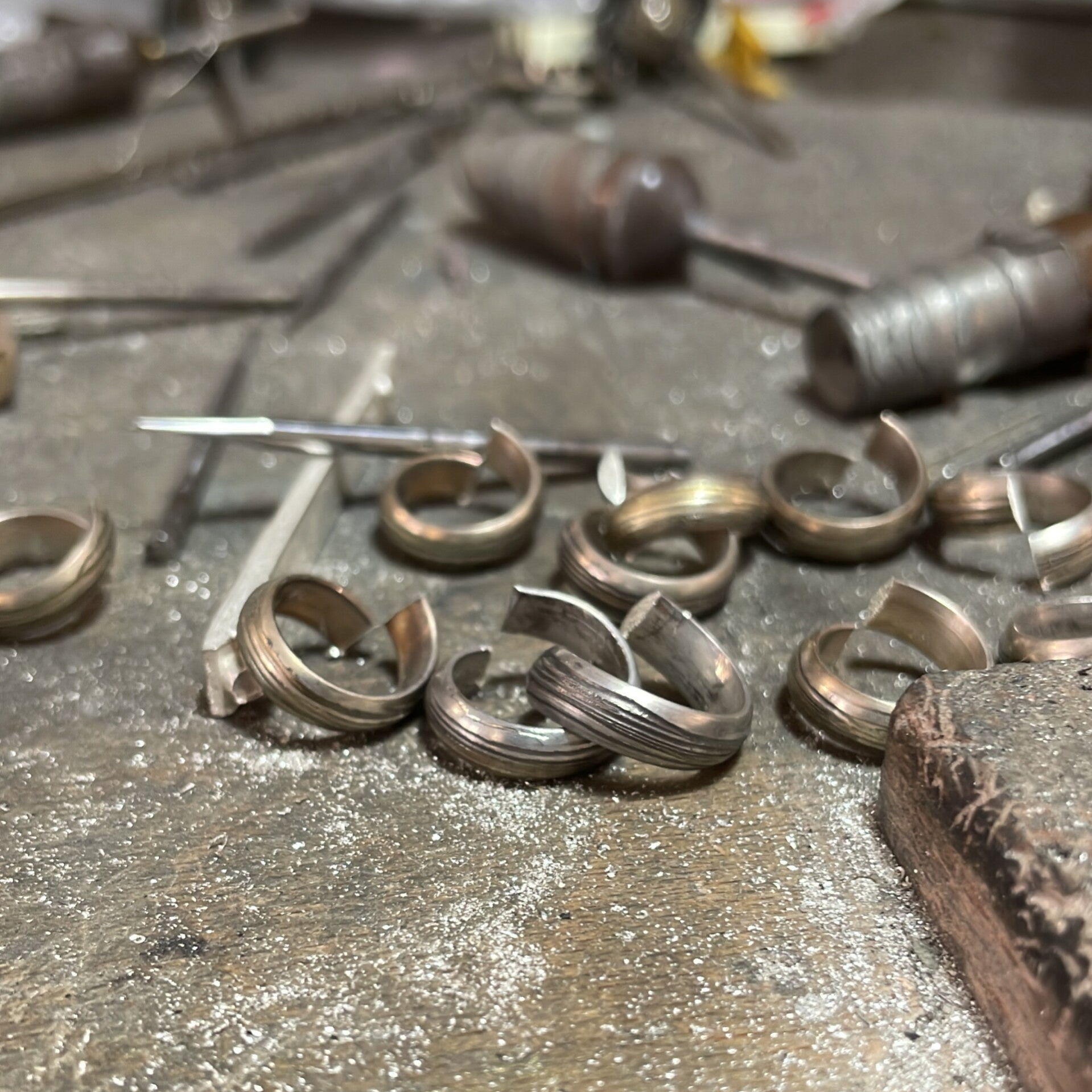 Le Duo d'Anneaux : L'entrelacement symbolise l'union, la force et la continuité. Un anneau capture la lumière par sa forme, l'autre par sa texture organique.