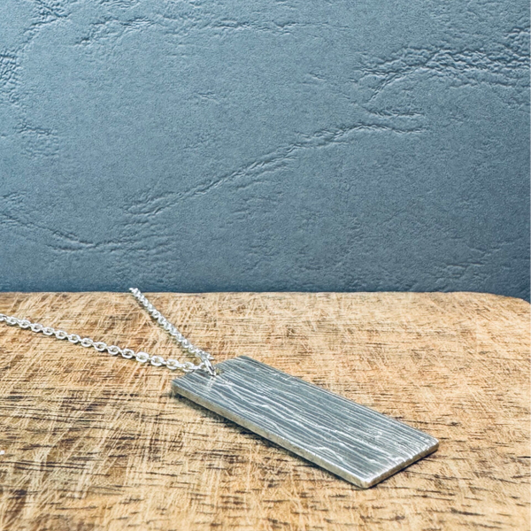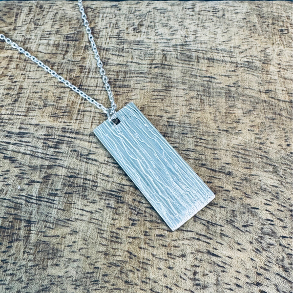 L'essence même de la collection WOOD dans ce pendentif en argent massif composé d'une plaque effet bois monté chaine maille forçat.
